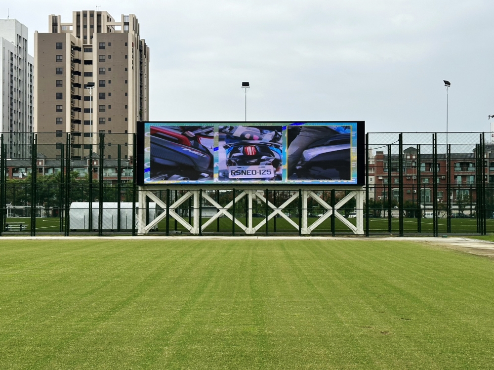 高雄楠梓文中足球場-P10戶外LED電視牆 (計分系統) 產品型號: P10戶外全彩 燈點間距 P10 像素構成 約高23字 寬80字 共可顯示1840字 模組尺寸 高368cm 寬1280cm 模組解析度 高368點 寬1280點 共計471040點 詢問