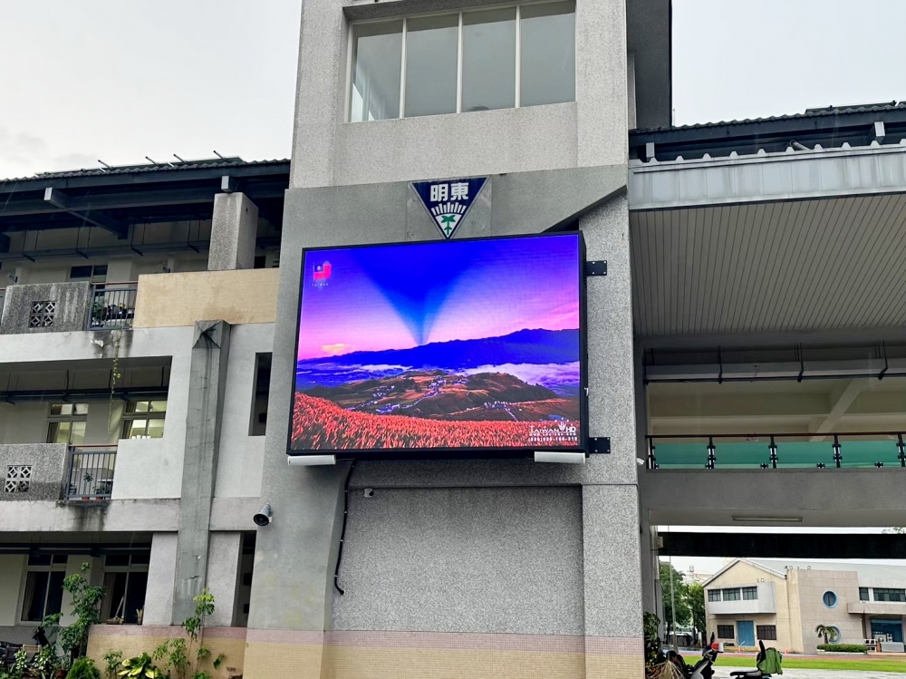 東明國中-P3戶外LED電視牆 產品型號: P3戶外全彩 燈點間距 P3戶外全彩 像素構成 高896點 寬1216點 模組尺寸 高268.8cm 寬364.8cm 像素密度 高56*寬76 共計4256字 詢問